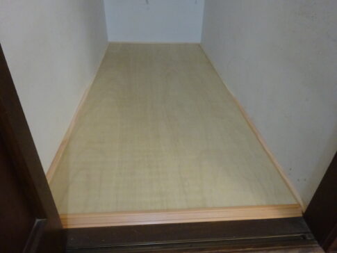 プロペラ換気扇も必要ないとのことでしたので、内機を撤去しボードで補修します。