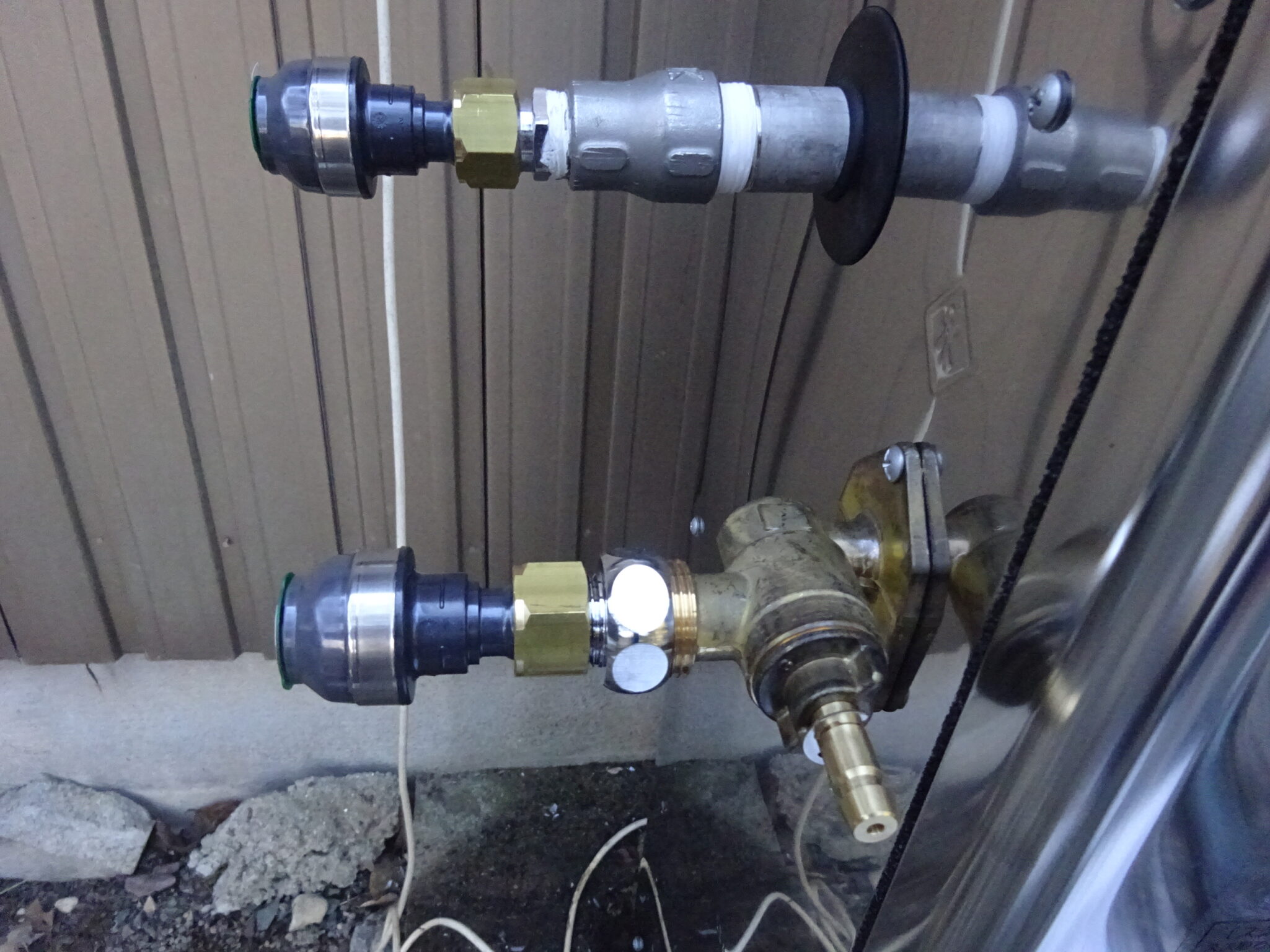 本体の接続部が6分でしたが、継手で4分に切り替えます。既設の配管が3分で細いためです。