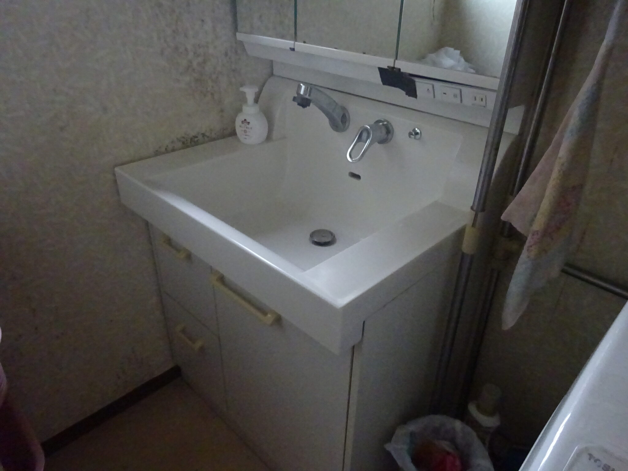 既設の洗面化粧台です。お疲れさまでした。