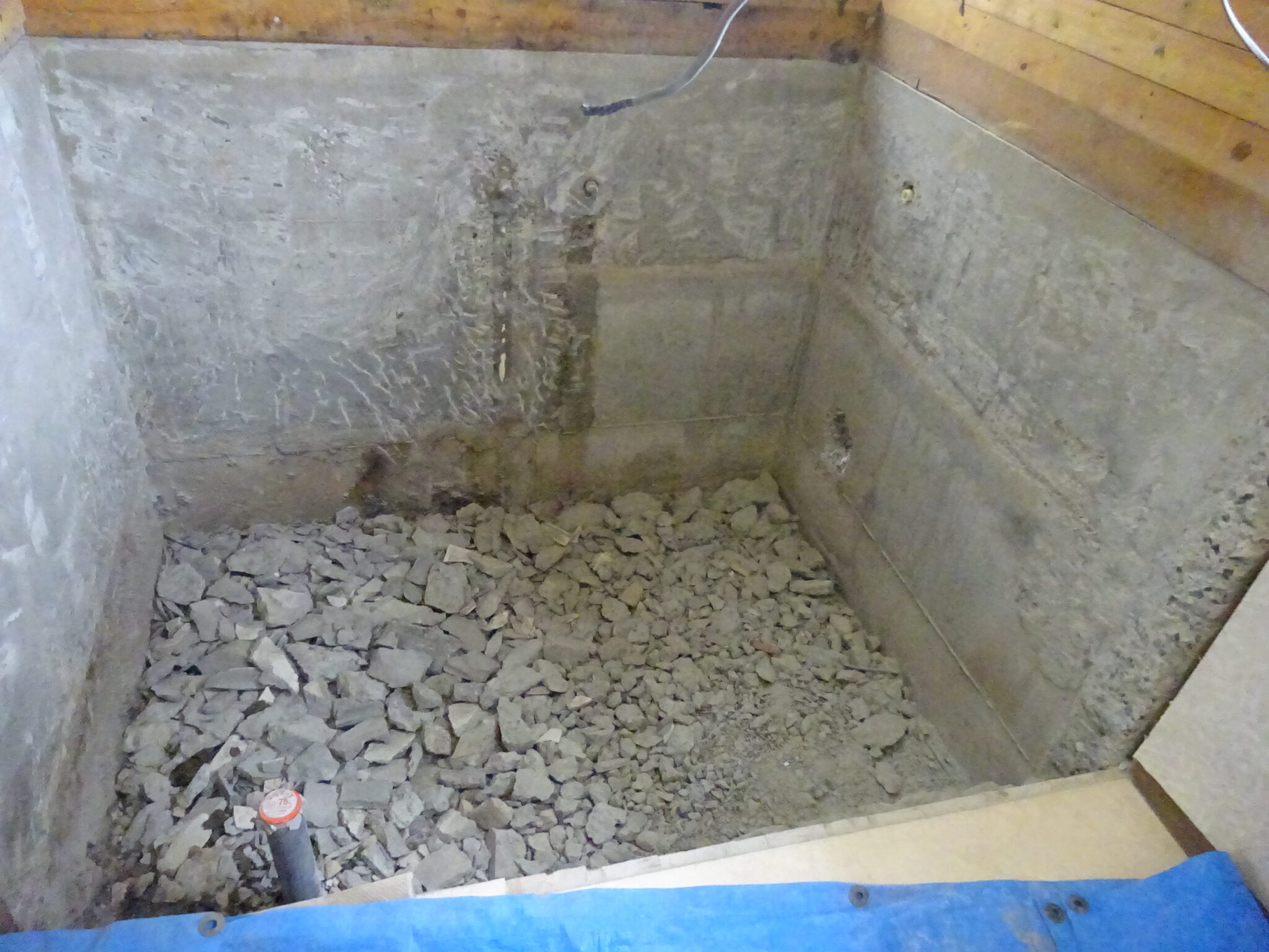 床のタイルがこのように割れていました。解体の際にはやはり土が流れ空洞が出来ていました。