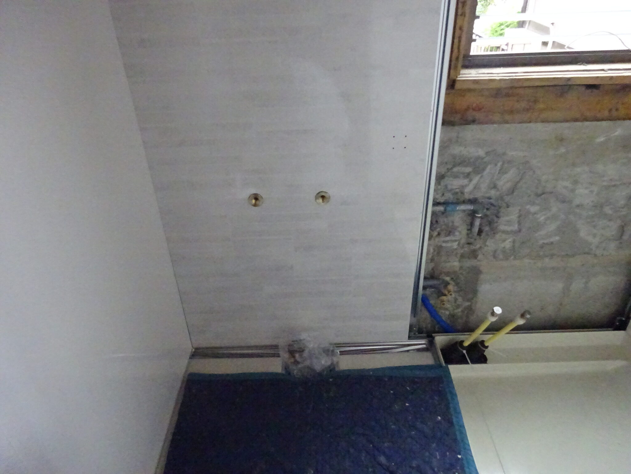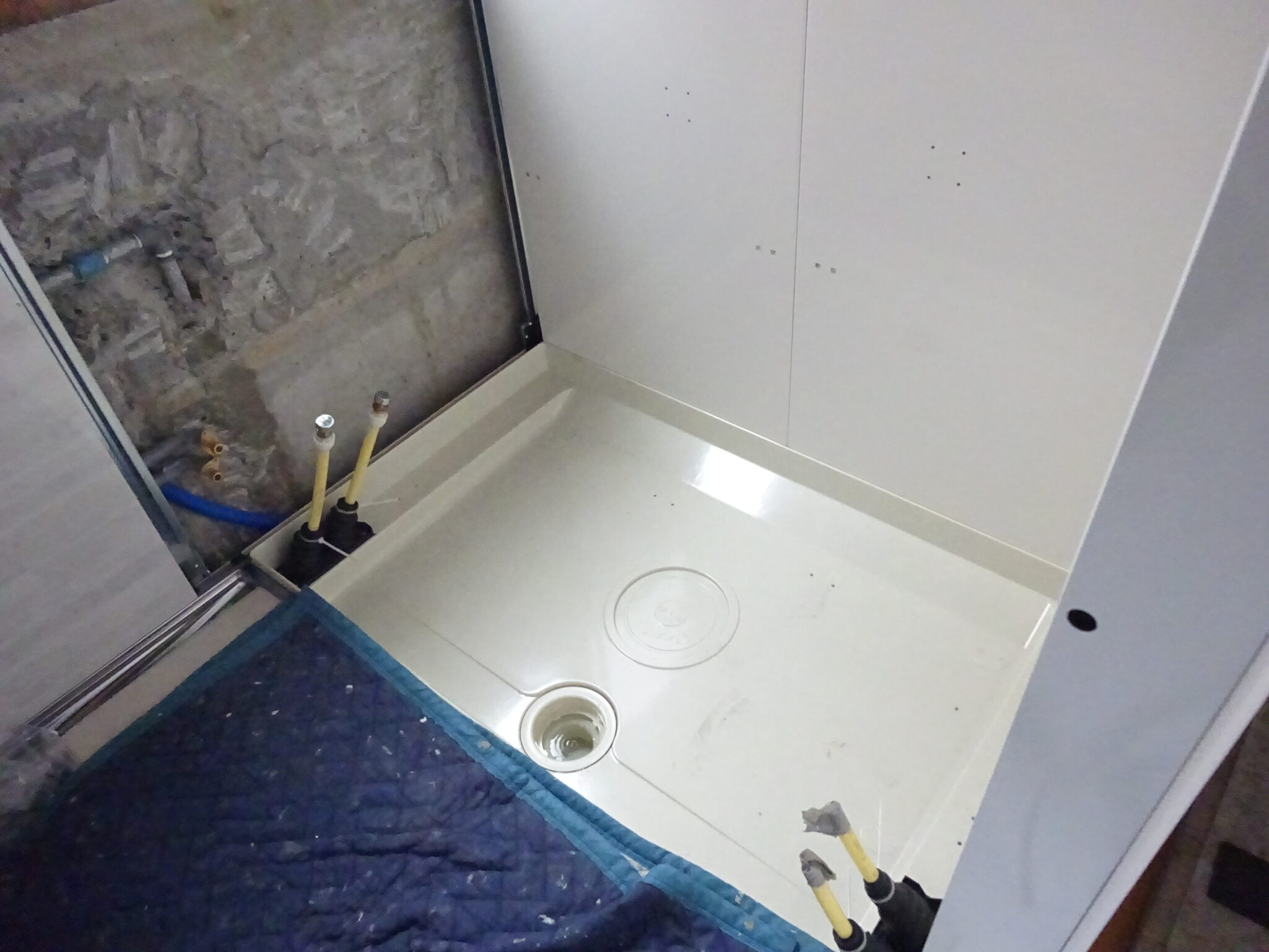 解体が完了し既設の給水管、給湯管、排水管を全て位置を切替、新しい管にも切替ました。