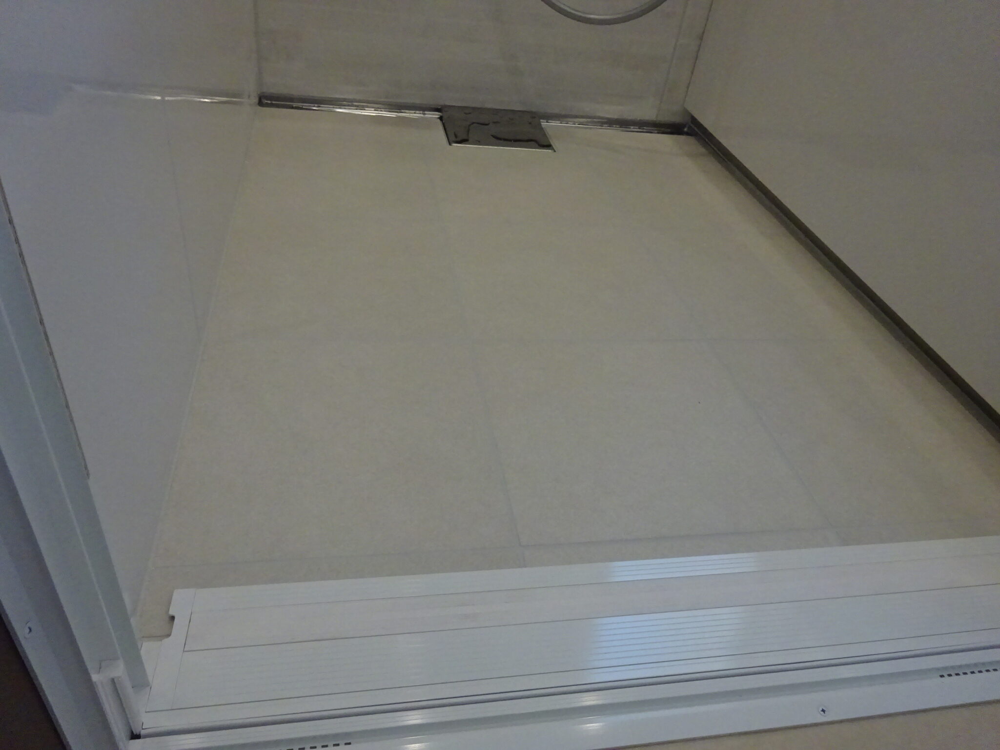 床磁器タイルカラーはカームホワイト、入り口には取り外しが出来るスロープが付きます。